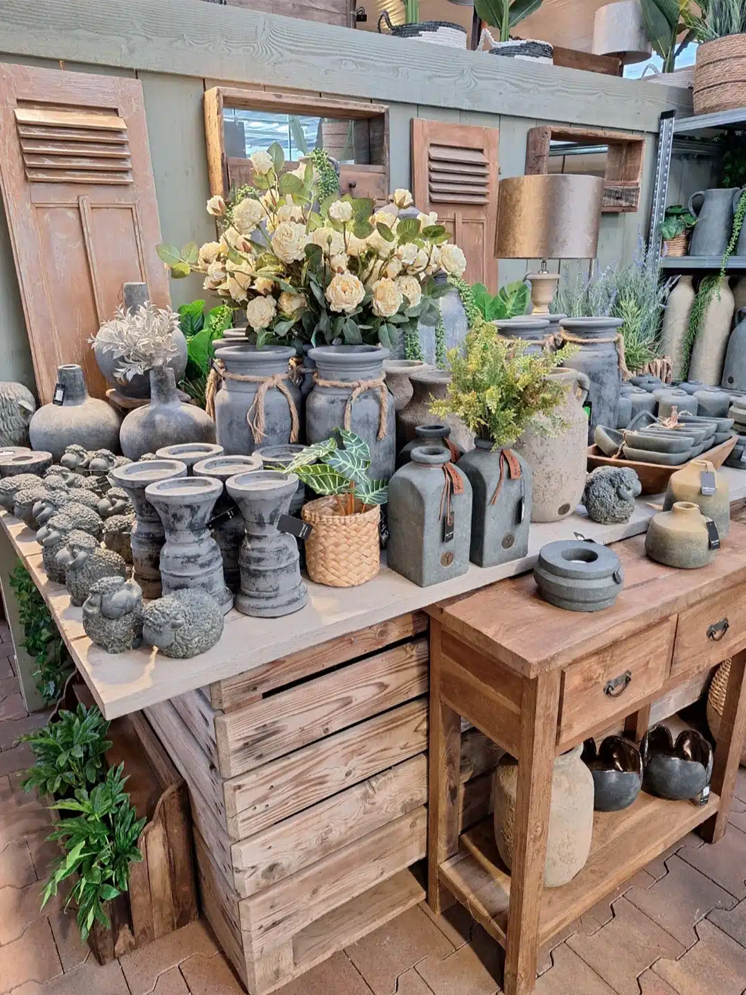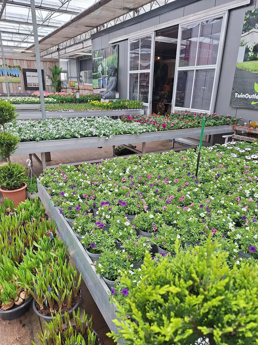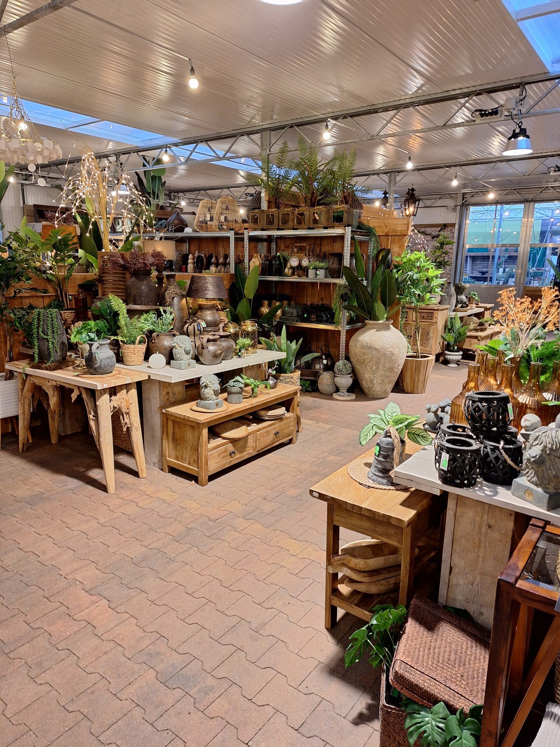 Onze winkel van 5000 m² staat vol met tuin- en kamerplanten, buitenpotten (altijd 50% korting), heel veel deco-artikelen en stoere, landelijke woonaccessoires, potgrond en grind.
